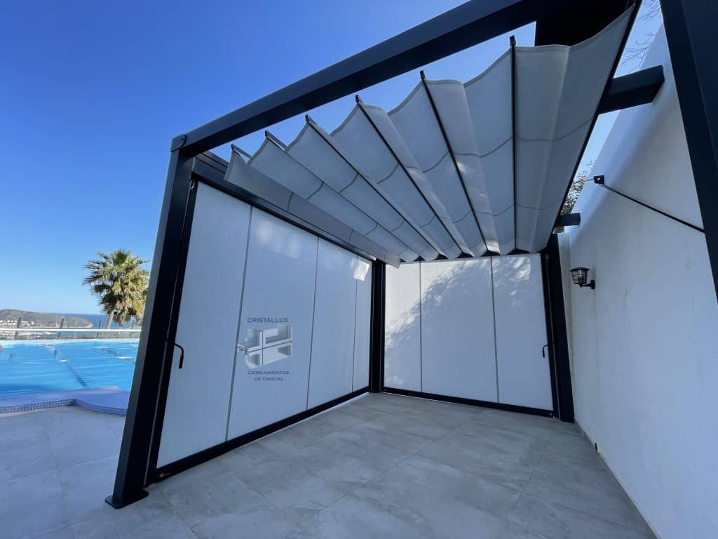 Toldos para pérgolas: Si tienes una pérgola en tu jardín o terraza, los toldos personalizados son la opción ideal para cubrir estos espacios. En CristalLux, diseñamos toldos a medida para pérgolas, permitiendo crear un área de sombra perfecta para disfrutar al aire libre sin preocuparse por el calor.